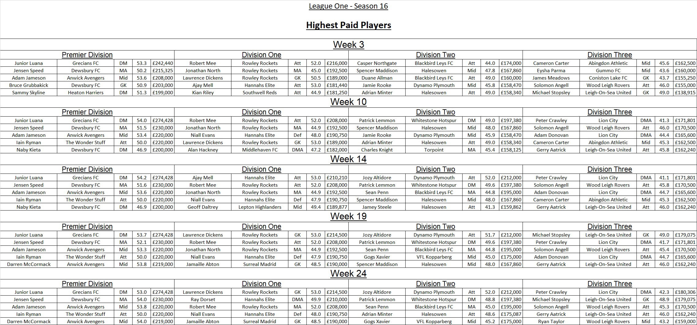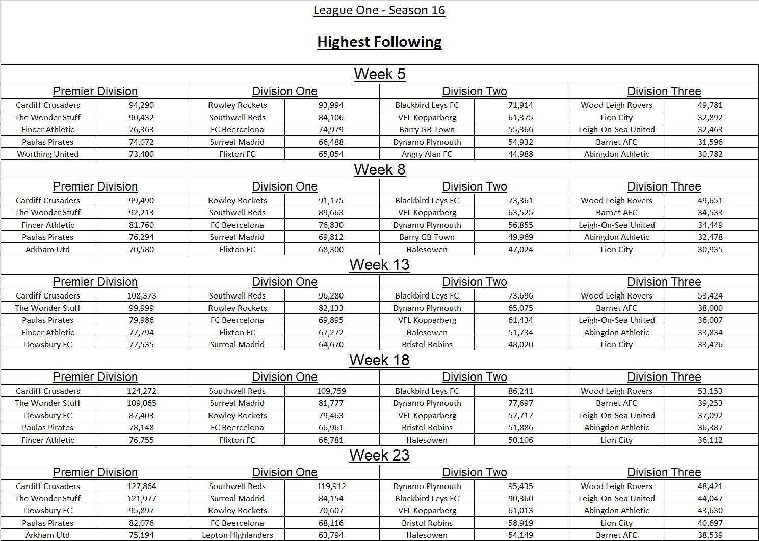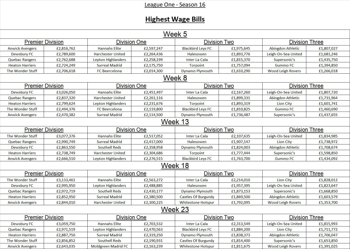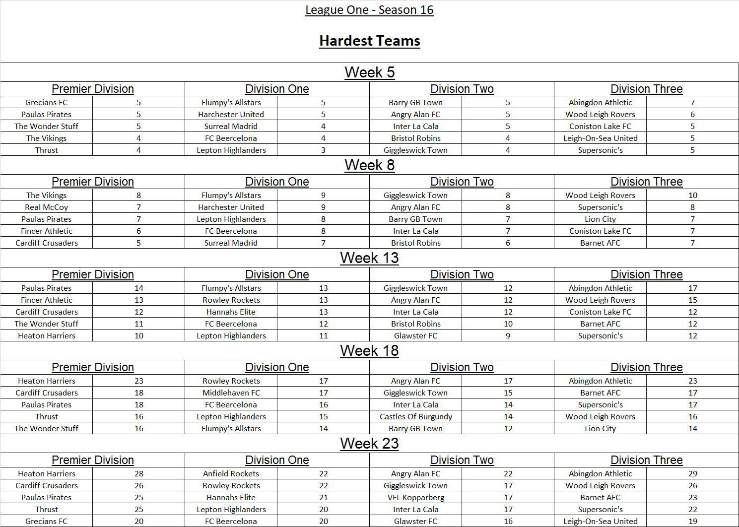 League Three Results